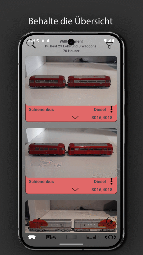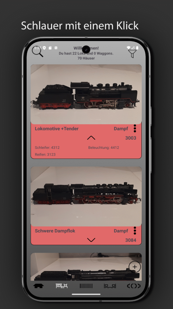 Kennt ihr das auch? Man steht im Keller oder auf der Messe, schaut eine Lok an und fragt sich:„Hab ich die schon?“Oder man sucht ewig nach der richtigen Schleifer-Nummer oder dem passenden Wagen zur Serie… Damit ist jetzt Schluss! Mit der App kannst du ganz einfach:✅ Deine Loks, Wagen, Häuser und Zubehör digital erfassen✅ Bilder,…